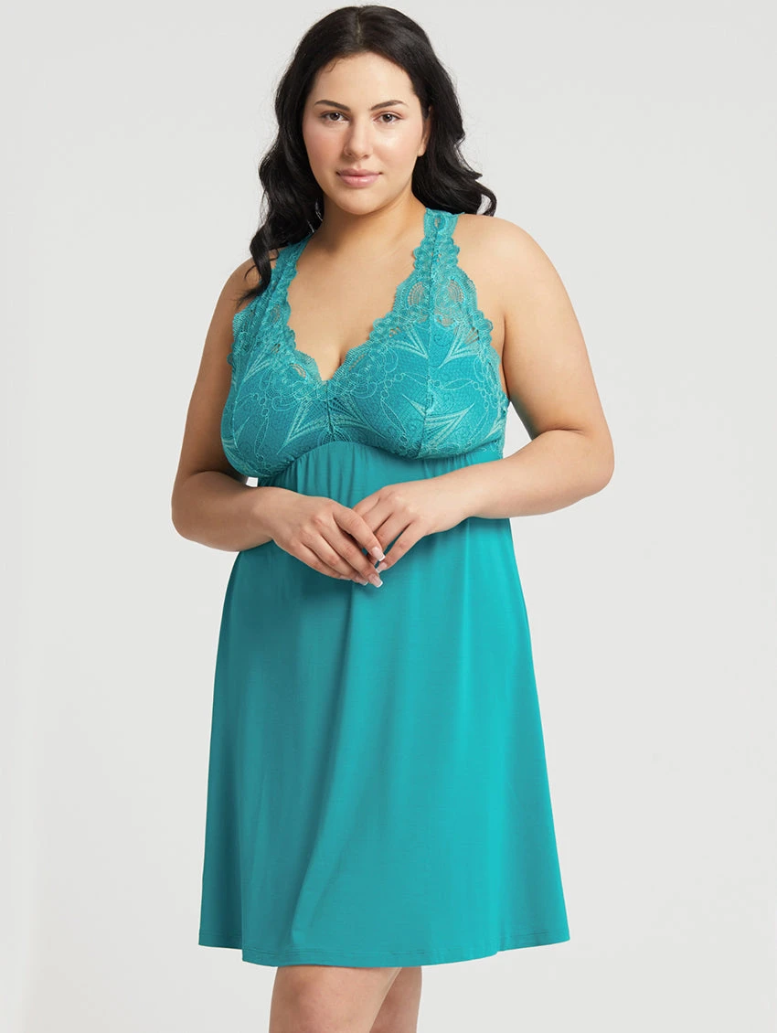 Fleur’t’s best-selling chemise, the Iconic, is a lace t-back dress in a beautiful, breathable, and eco-friendly fabric – made to keep you cool and comfy. This chemise captures the best of Fleur’t’s sensibility with its combination of modern design, luxury fabrication, and classic appeal. This full bust style is the same great design and quality that now accommodates a fuller cup! The cup edges extend higher to ensure coverage and support.
